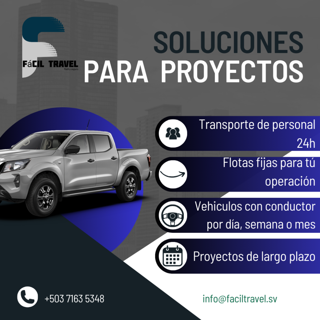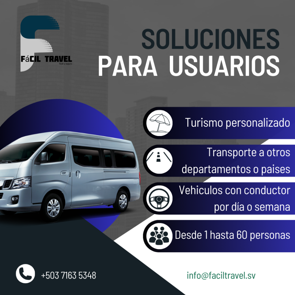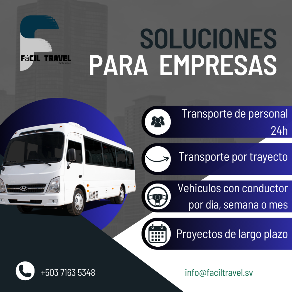 «Our transportation company in El Salvador offers you personalized private transportation solutions with bilingual drivers; for Companies, Projects, or Tourism. Get a quote with us, we have the solution for your transportation needs.»